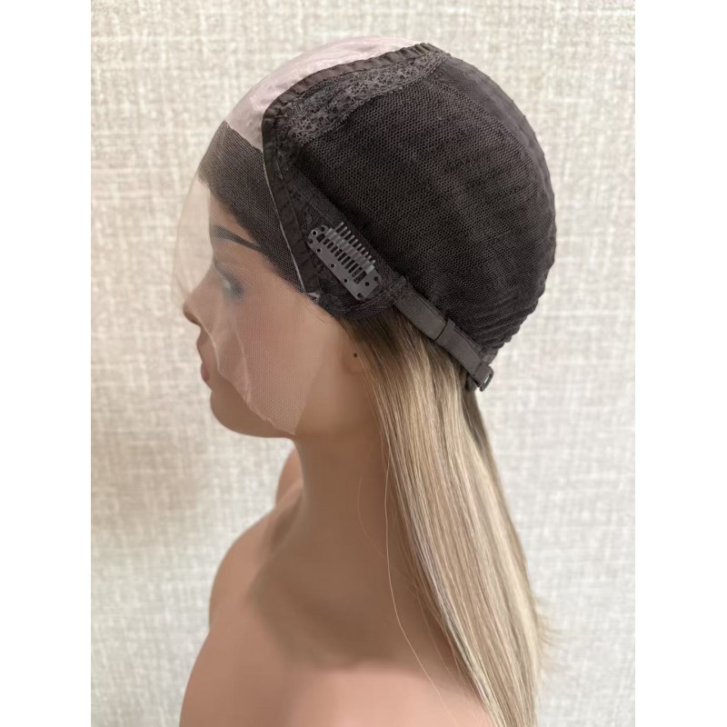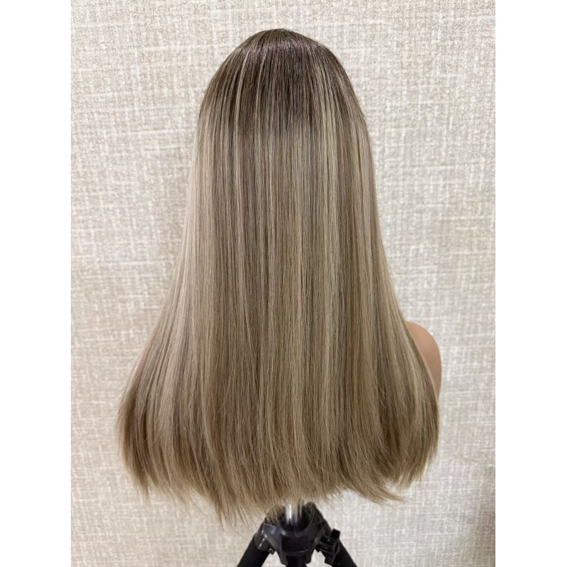 18" Balayage Ash-Rooted Champagne Blonde Lace Top Wig