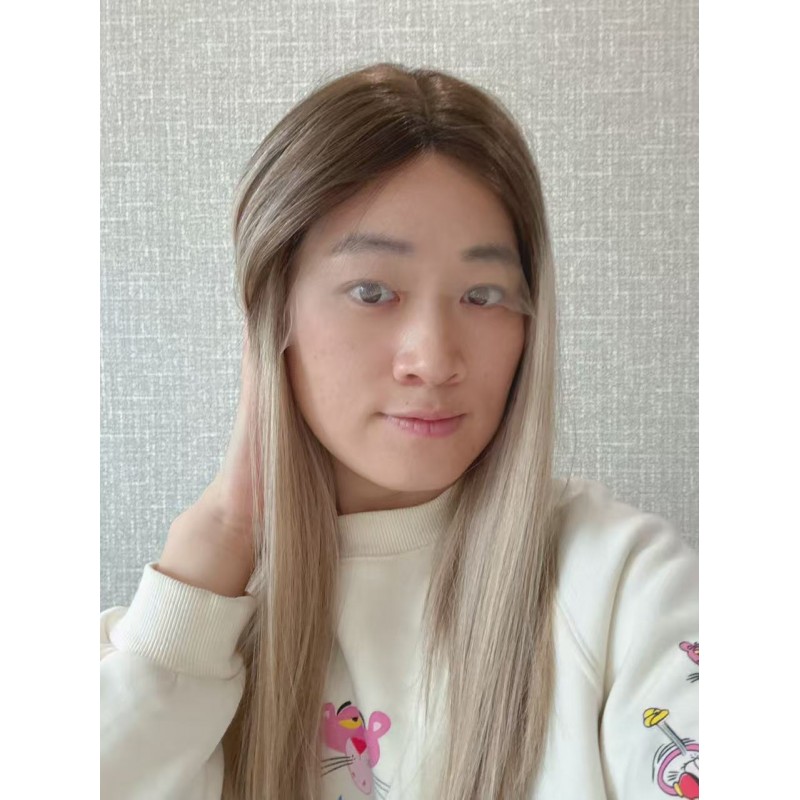 Designed for a refined, natural look, this lace top wig pairs an ash-rooted champagne blonde melt with premium Brazilian hair. The hand-tied Swiss lace top and silk liner deliver a seamless scalp effect and a soft, realistic hairline.