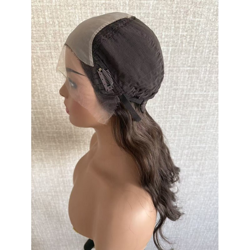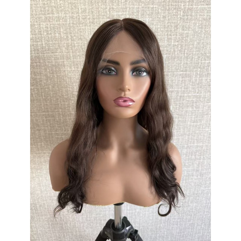 If you love a cool brown tone with elegant movement, this 20" Brazilian wave lace top wig is designed for you. The single knots and Swiss lace create a soft hairline that blends beautifully into your own skin, while the handmade lace top and wefted back keep the cap light, secure, and wearable all day. It is a polished, everyday luxury piece that still feels effortless and natural.