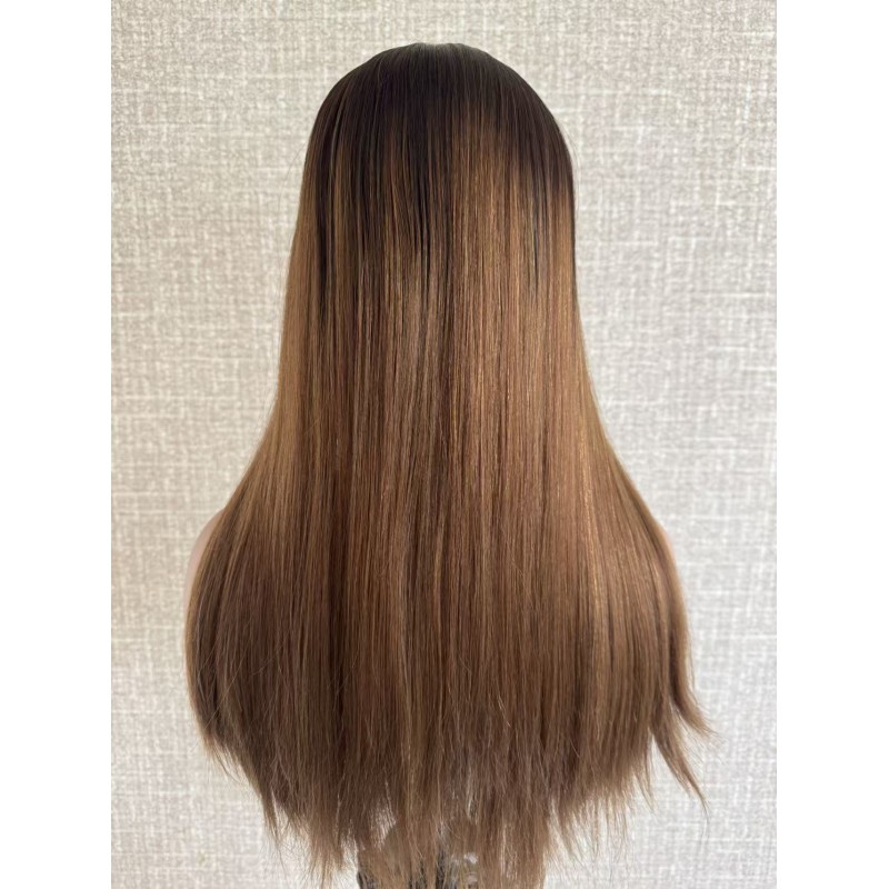 24" Balayage Caramel Brown with Dark Brown Roots – Custom All Hand-Made Hairpiece