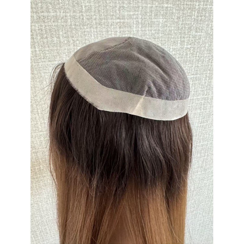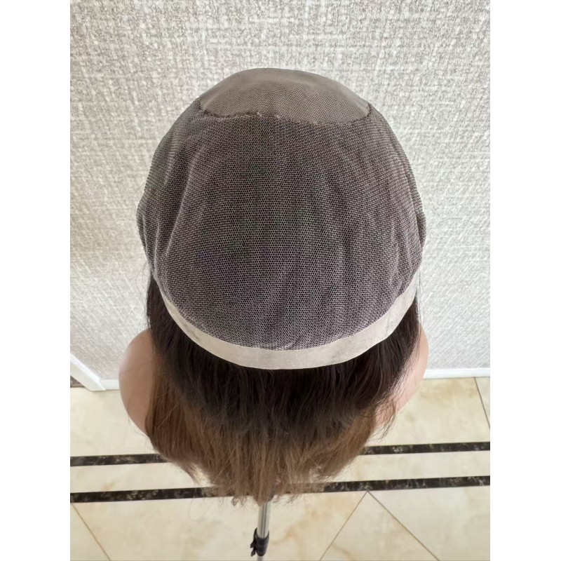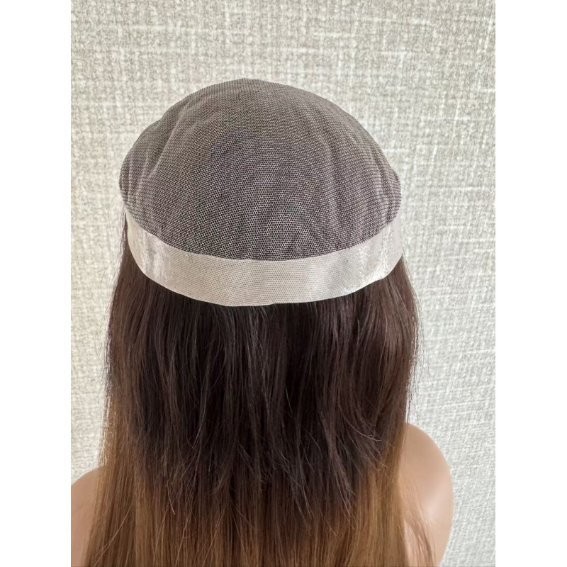 Mono 3# (monofilament in natural dark brown grid) — soft, breathable, durable; supports multi-directional parting.