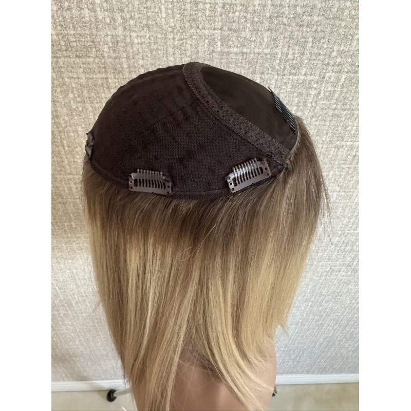 Designed for women seeking lightweight coverage and natural volume, this silk top hair piece blends refined craftsmanship with soft balayage ashy blonde tones. The 8×8 cap base provides full coverage at the crown, while the 4×4 handmade silk top ensures an undetectable scalp look with effortless comfort.